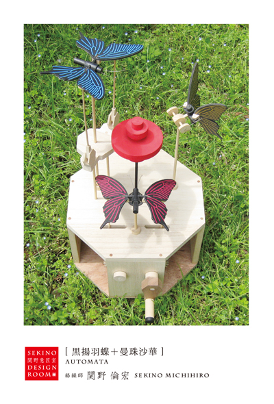 「黒揚羽蝶+曼珠沙華」2010 創 2010年02月17日 2008年、関野のからくり玩具創作2号目の作品[黒揚羽蝶+曼珠沙華]を、寸法・デザイン・仕掛け・・・総ブラッシュアップをかけてリニューアル制作中。今月中には・・・と思っています。似て非なるもの・・・作品から製品と呼べる強度を持たせた作品に仕上げたい。「黒揚羽蝶+曼珠沙華」2008版 http://sdr.shisyou.com/gallery/07.htmlとても気に入っている作品なので、気合を入れて勤しむ所存! 関野絡繰堂 公式HP/http://sdratm.jimdo.com/ 展覧会+ワークショップ情報/http://sdr.blog.shinobi.jp/Entry/98/ 関野絡繰堂Yahoo!店/ https://store.shopping.yahoo.co.jp/skdy/ 関野絡繰堂BASE店/ http://sdr.base.ec/ 関野絡繰堂minne店/ https://minne.com/sdr 関野絡繰堂Amazon店/ http://www.amazon.co.jp/(関野絡繰堂で検索) 関野絡繰堂Pinkoi店/ https://jp.pinkoi.com/store/sekino 関野絡繰堂メルカリ店/ https://mercari-shops.com/shops/rhPSvVgTw8RPBKCmLa4tTL 常設展示・取り扱い店情報/http://sdr.blog.shinobi.jp/Entry/355/ カラクリ 絡繰 オートマタ AUTOMATA 組木 ペットの振り子時計 PR http://sdr.blog.shinobi.jp/Entry/119/「黒揚羽蝶+曼珠沙華」2010