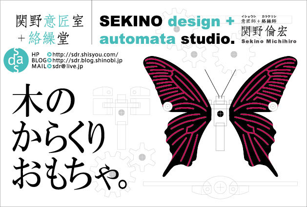 春の個展DM案 その1 創 2010年02月24日 本日から取り掛かってるDM。まだまだ途中・・・というか、翌朝がらりと変える可能性大(笑)~な、草案 第一号♪ 関野絡繰堂 公式HP/http://sdratm.jimdo.com/ 展覧会+ワークショップ情報/http://sdr.blog.shinobi.jp/Entry/98/ 関野絡繰堂Yahoo!店/ https://store.shopping.yahoo.co.jp/skdy/ 関野絡繰堂BASE店/ http://sdr.base.ec/ 関野絡繰堂minne店/ https://minne.com/sdr 関野絡繰堂Amazon店/ http://www.amazon.co.jp/(関野絡繰堂で検索) 関野絡繰堂Pinkoi店/ https://jp.pinkoi.com/store/sekino 関野絡繰堂メルカリ店/ https://mercari-shops.com/shops/rhPSvVgTw8RPBKCmLa4tTL 常設展示・取り扱い店情報/http://sdr.blog.shinobi.jp/Entry/355/ カラクリ 絡繰 オートマタ AUTOMATA 組木 ペットの振り子時計 PR http://sdr.blog.shinobi.jp/Entry/122/春の個展DM案 その1
