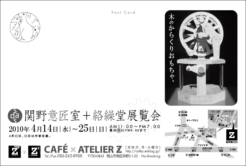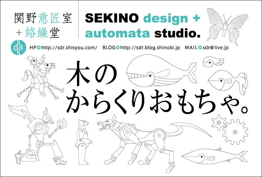 春の個展DM案 その2 想 2010年02月24日 表面(宛名面)は微妙に変化を。裏面はこんな感じにしてみました。なんか、図面から「こんなん創ってる人の展覧会かー」ってわかってもらえて、興味を持ってくれた人が会場に来てくれたら嬉しいなあっと思って。 関野絡繰堂 公式HP/http://sdratm.jimdo.com/ 展覧会+ワークショップ情報/http://sdr.blog.shinobi.jp/Entry/98/ 関野絡繰堂Yahoo!店/ https://store.shopping.yahoo.co.jp/skdy/ 関野絡繰堂BASE店/ http://sdr.base.ec/ 関野絡繰堂minne店/ https://minne.com/sdr 関野絡繰堂Amazon店/ http://www.amazon.co.jp/(関野絡繰堂で検索) 関野絡繰堂Pinkoi店/ https://jp.pinkoi.com/store/sekino 関野絡繰堂メルカリ店/ https://mercari-shops.com/shops/rhPSvVgTw8RPBKCmLa4tTL 常設展示・取り扱い店情報/http://sdr.blog.shinobi.jp/Entry/355/ カラクリ 絡繰 オートマタ AUTOMATA 組木 ペットの振り子時計 PR http://sdr.blog.shinobi.jp/Entry/123/春の個展DM案 その2