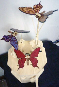 黒揚羽蝶と華 創 2010年03月16日 もともとは「黒揚羽蝶+曼珠沙華」というタイトルをつけていた作品ですが、今回の展示は『黒揚羽蝶+華』と改題しました。試験管型の花瓶を中央に配した絡繰り花器。春の展示の際は何を活けようか、今から楽しみです♪ 関野絡繰堂 公式HP/http://sdratm.jimdo.com/ 展覧会+ワークショップ情報/http://sdr.blog.shinobi.jp/Entry/98/ 関野絡繰堂Yahoo!店/ https://store.shopping.yahoo.co.jp/skdy/ 関野絡繰堂BASE店/ http://sdr.base.ec/ 関野絡繰堂minne店/ https://minne.com/sdr 関野絡繰堂Amazon店/ http://www.amazon.co.jp/(関野絡繰堂で検索) 関野絡繰堂Pinkoi店/ https://jp.pinkoi.com/store/sekino 関野絡繰堂メルカリ店/ https://mercari-shops.com/shops/rhPSvVgTw8RPBKCmLa4tTL 常設展示・取り扱い店情報/http://sdr.blog.shinobi.jp/Entry/355/ カラクリ 絡繰 オートマタ AUTOMATA 組木 ペットの振り子時計 PR http://sdr.blog.shinobi.jp/Entry/134/黒揚羽蝶と華