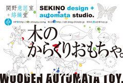 個展5日目 創 2010年04月18日 昨日、4日目(全10日間)での売上が目標の約半分に到達。ほっとひと安心。今日、5日目の在廊後に北上し我が家へ。明日、明後日の2日で売り切れたり品薄な玩具を追加制作して再び南下する予定。 関野絡繰堂 公式HP/http://sdratm.jimdo.com/ 展覧会+ワークショップ情報/http://sdr.blog.shinobi.jp/Entry/98/ 関野絡繰堂Yahoo!店/ https://store.shopping.yahoo.co.jp/skdy/ 関野絡繰堂BASE店/ http://sdr.base.ec/ 関野絡繰堂minne店/ https://minne.com/sdr 関野絡繰堂Amazon店/ http://www.amazon.co.jp/(関野絡繰堂で検索) 関野絡繰堂Pinkoi店/ https://jp.pinkoi.com/store/sekino 関野絡繰堂メルカリ店/ https://mercari-shops.com/shops/rhPSvVgTw8RPBKCmLa4tTL 常設展示・取り扱い店情報/http://sdr.blog.shinobi.jp/Entry/355/ カラクリ 絡繰 オートマタ AUTOMATA 組木 ペットの振り子時計 PR http://sdr.blog.shinobi.jp/Entry/159/個展5日目