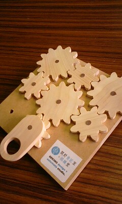 このギアの玩具、見た目も、ギアを廻すときに手に伝わってくる振動も、木ならではのかすかな音も、すべてがステキで、一目惚れして注文させていただきました。