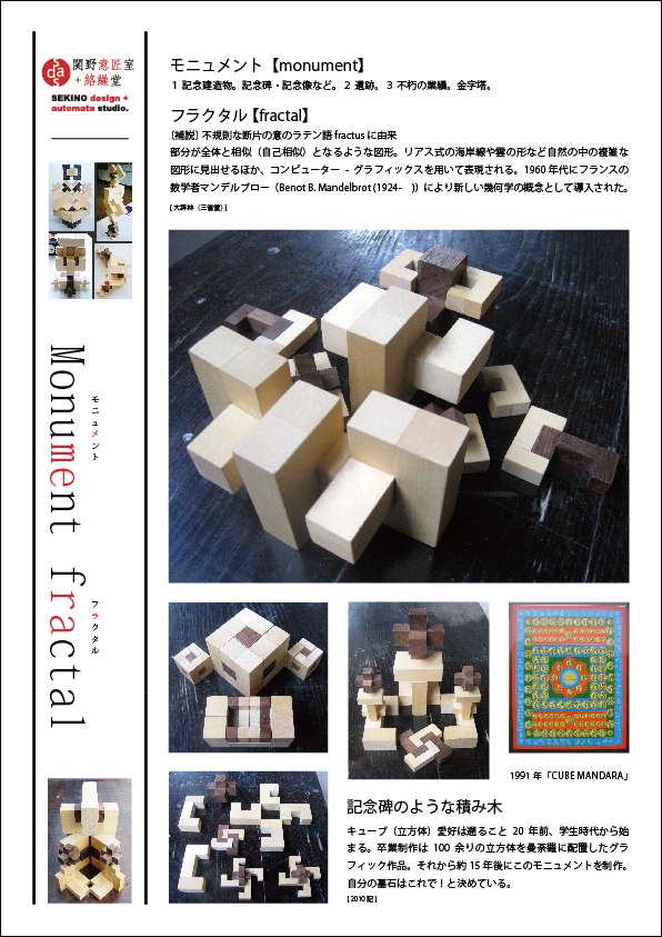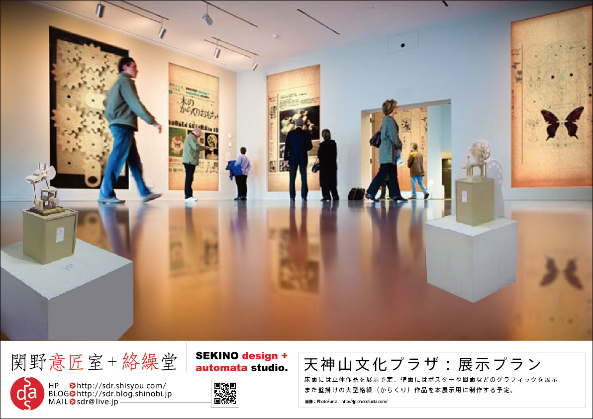 天神山文化プラザ 公募展 報 2010年08月15日 【 2011天プラ・セレクション作家選考展 】8月17日から、岡山県天神山文化プラザにて、2011年の天プラセレクション公募展が始まります。作品は代表作をほぼ全て展示しています。また、来年の個展権をかけての公開プレゼンの意味合いを持つ展覧会ですので、過去の個展やグループ展のDMやポスター、展示風景の壁面展示を予定しています。また、本会場での展示イメージや、作品の説明などもパネル化しました。[天神山文化プラザでの展示プラン] 画像エフェクト:PhotoFunia http://jp.photofunia.com/ [2010年4月に行ったカフェ×アトリエZさんでの展示風景][オリジナル積木 モニュメントの解説]展示+ワークショップ情報/Exhibition+W.S. スケジュールhttp://sdr.blog.shinobi.jp/Entry/98/ 関野絡繰堂 公式HP/http://sdratm.jimdo.com/ 展覧会+ワークショップ情報/http://sdr.blog.shinobi.jp/Entry/98/ 関野絡繰堂Yahoo!店/ https://store.shopping.yahoo.co.jp/skdy/ 関野絡繰堂BASE店/ http://sdr.base.ec/ 関野絡繰堂minne店/ https://minne.com/sdr 関野絡繰堂Amazon店/ http://www.amazon.co.jp/(関野絡繰堂で検索) 関野絡繰堂Pinkoi店/ https://jp.pinkoi.com/store/sekino 関野絡繰堂メルカリ店/ https://mercari-shops.com/shops/rhPSvVgTw8RPBKCmLa4tTL 常設展示・取り扱い店情報/http://sdr.blog.shinobi.jp/Entry/355/ カラクリ 絡繰 オートマタ AUTOMATA 組木 ペットの振り子時計 PR http://sdr.blog.shinobi.jp/Entry/199/天神山文化プラザ 公募展