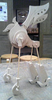 新作「サイズハンズロボ」 創 2010年08月31日 改良を加えながら(細々と)バリエーションを増やしている「サイズハンズロボット」という作品。いやー、この歳になって改めて「継続は力なり」って言葉を噛みしめてます。いえ、テキトーです。今回は『飛行形態』。・・・まずは過去作品のおさらいから。[通常形態][ヘッド][APE形態][BIKE形態]そんで今回は・・・[PLANE形態]モビールにして天井から吊り下げようかとも考えたんですが、今回はこういう形で展示します。今までは桐やMDFを素材としていましたが、ヒノキでは初の製作。最後に、ずーいぶん前に撮影した、通常・APE・BIKE揃った写真。撮影場所は今は閉鎖してしまった現代玩具博物館・オルゴール夢館の工作室です。なつかしいな。さて!いよいよ明後日から「岡山島根香川作家@鳥取展」が始まります!こちらもドーゾよろしく。 → http://sdr.blog.shinobi.jp/Entry/191/展示+ワークショップ情報/Exhibition+W.S. スケジュールhttp://sdr.blog.shinobi.jp/Entry/98/ 関野絡繰堂 公式HP/http://sdratm.jimdo.com/ 展覧会+ワークショップ情報/http://sdr.blog.shinobi.jp/Entry/98/ 関野絡繰堂Yahoo!店/ https://store.shopping.yahoo.co.jp/skdy/ 関野絡繰堂BASE店/ http://sdr.base.ec/ 関野絡繰堂minne店/ https://minne.com/sdr 関野絡繰堂Amazon店/ http://www.amazon.co.jp/(関野絡繰堂で検索) 関野絡繰堂Pinkoi店/ https://jp.pinkoi.com/store/sekino 関野絡繰堂メルカリ店/ https://mercari-shops.com/shops/rhPSvVgTw8RPBKCmLa4tTL 常設展示・取り扱い店情報/http://sdr.blog.shinobi.jp/Entry/355/ カラクリ 絡繰 オートマタ AUTOMATA 組木 ペットの振り子時計 PR http://sdr.blog.shinobi.jp/Entry/201/新作「サイズハンズロボ」