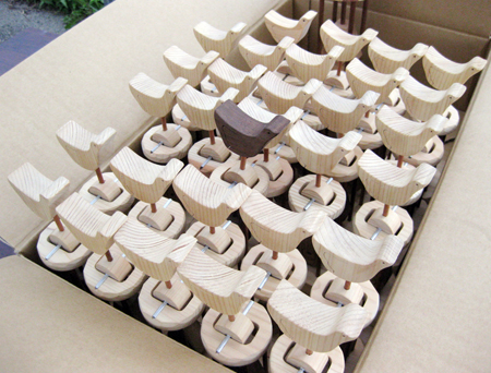 振り子鳥ミニ完成♪ 創 2011年06月23日 7月20日から始まる展覧会のために「振り子鳥ミニ」を30個準備しました。※後ろの大きいのがレギュラーサイズ今回は特別バージョンとして2色のレアカラーもあります。黒い鳥(ウォルナット)と青い鳥(ホゥ)♪ ・・・各一個黒い鳥ヴァージョン。お求めはお早めに~(笑)・・・今回は振り子鳥の制作を友人に手伝ってもらいました。F君、すごく助かったよ!ありがとう!!・・・「~関野倫宏・智子作品展~ 森に遊ぶ 絡繰+絵画」http://sdr.blog.shinobi.jp/Entry/253/展覧会+ワークショップ情報/Exhibition+W.S. スケジュールhttp://sdr.blog.shinobi.jp/Entry/98/関野倫宏プロフィール/岡山県美術家協会 美術家マップhttp://www.opaa.jp/members/716.htmlAMOKAプロジェクトBLOGhttp://ameblo.jp/amoka-pro 関野絡繰堂 公式HP/http://sdratm.jimdo.com/ 展覧会+ワークショップ情報/http://sdr.blog.shinobi.jp/Entry/98/ 関野絡繰堂Yahoo!店/ https://store.shopping.yahoo.co.jp/skdy/ 関野絡繰堂BASE店/ http://sdr.base.ec/ 関野絡繰堂minne店/ https://minne.com/sdr 関野絡繰堂Amazon店/ http://www.amazon.co.jp/(関野絡繰堂で検索) 関野絡繰堂Pinkoi店/ https://jp.pinkoi.com/store/sekino 関野絡繰堂メルカリ店/ https://mercari-shops.com/shops/rhPSvVgTw8RPBKCmLa4tTL 常設展示・取り扱い店情報/http://sdr.blog.shinobi.jp/Entry/355/ カラクリ 絡繰 オートマタ AUTOMATA 組木 ペットの振り子時計 PR http://sdr.blog.shinobi.jp/Entry/260/振り子鳥ミニ完成♪