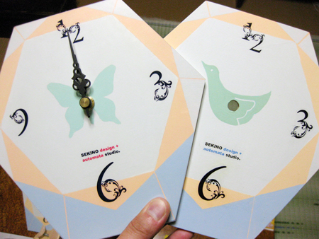 振り子時計 創 2011年08月09日 先月の展覧会でご注文いただいた「振り子時計」を製作中。今回の販売実績から、大量に購入したムーブメント・・・。その数、50個!(笑)駆け出し作家の台所事情からすると大勝負を駆けた数量です。今回の生産分は、文字盤を手描きしているので値段も8,000円でしたが、今後はYUPOというビニール系の紙に印刷した文字盤になります。その分、価格も抑えて5,000円で販売をいたします。(2011年9月現在の価格)ただ「値段が高くてもやっぱり手描きがいい」というニーズがあれば、そちらも数量限定で対応を考えていこうかな~と。展覧会+ワークショップ情報/Exhibition+W.S. スケジュールhttp://sdr.blog.shinobi.jp/Entry/98/関野倫宏プロフィール/岡山県美術家協会 美術家マップhttp://www.opaa.jp/members/716.htmlAMOKAプロジェクトBLOGhttp://ameblo.jp/amoka-pro 関野絡繰堂 公式HP/http://sdratm.jimdo.com/ 展覧会+ワークショップ情報/http://sdr.blog.shinobi.jp/Entry/98/ 関野絡繰堂Yahoo!店/ https://store.shopping.yahoo.co.jp/skdy/ 関野絡繰堂BASE店/ http://sdr.base.ec/ 関野絡繰堂minne店/ https://minne.com/sdr 関野絡繰堂Amazon店/ http://www.amazon.co.jp/(関野絡繰堂で検索) 関野絡繰堂Pinkoi店/ https://jp.pinkoi.com/store/sekino 関野絡繰堂メルカリ店/ https://mercari-shops.com/shops/rhPSvVgTw8RPBKCmLa4tTL 常設展示・取り扱い店情報/http://sdr.blog.shinobi.jp/Entry/355/ カラクリ 絡繰 オートマタ AUTOMATA 組木 ペットの振り子時計 PR http://sdr.blog.shinobi.jp/Entry/278/振り子時計