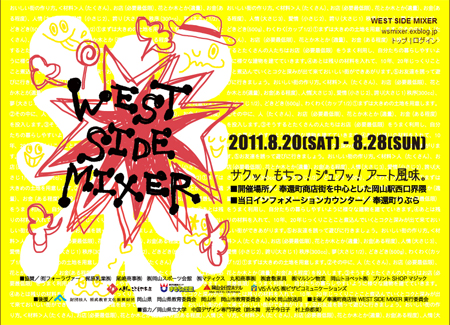 ウエスト サイド ミキサー 報 2011年08月22日 岡山奉還町商店街で続けられているアートイベント「WEST SIDE MIXER/ウエスト サイド ミキサー」サイトアドレス http://wsmixer.exblog.jp/デザイナー時代、10年ほど過ごした勤務地のご近所の商店街「奉還町」。今 告白すると、この地に独立デザイナーとして事務所を借りようかと夢想したこともあったほど大好きな場所。木工玩具作家として、初めてイベントに参加させてもらいます♪内容はまだ確定していませんが、木の振り子のおもちゃ作りや木製ブローチ作りのワークショップを予定しています。楽しみ楽しみ☆展覧会+ワークショップ情報/Exhibition+W.S. スケジュールhttp://sdr.blog.shinobi.jp/Entry/98/関野倫宏プロフィール/岡山県美術家協会 美術家マップhttp://www.opaa.jp/members/716.htmlAMOKAプロジェクトBLOGhttp://ameblo.jp/amoka-pro 関野絡繰堂 公式HP/http://sdratm.jimdo.com/ 展覧会+ワークショップ情報/http://sdr.blog.shinobi.jp/Entry/98/ 関野絡繰堂Yahoo!店/ https://store.shopping.yahoo.co.jp/skdy/ 関野絡繰堂BASE店/ http://sdr.base.ec/ 関野絡繰堂minne店/ https://minne.com/sdr 関野絡繰堂Amazon店/ http://www.amazon.co.jp/(関野絡繰堂で検索) 関野絡繰堂Pinkoi店/ https://jp.pinkoi.com/store/sekino 関野絡繰堂メルカリ店/ https://mercari-shops.com/shops/rhPSvVgTw8RPBKCmLa4tTL 常設展示・取り扱い店情報/http://sdr.blog.shinobi.jp/Entry/355/ カラクリ 絡繰 オートマタ AUTOMATA 組木 ペットの振り子時計 PR http://sdr.blog.shinobi.jp/Entry/282/ウエスト サイド ミキサー