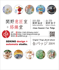 関野絡繰堂ギャラリーとガチャ用POP 創 2011年09月06日 ガチャマシーンの前面に掲出するPOP(Pint of purchase advertising)が完成。あとは、マシーンと「缶バッジ」の到着を待つばかり♪>缶バッジ 1回200円 全10種 直径32mm>コットンバッグ 1回400円 全8種 A4サイズ そして・・・水面下での~んびり進行中の「関野絡繰堂ギャラリー」のお知らせ。早ければ(そして順調ならば)今年の年末~年始に数日間だけプレオープンの予定。場所は岡山市になります。最上稲荷までの自転車専用道路沿いという立地条件です。初詣の寄り道にどうぞ♪詳細は順次こちらのオフィシャルBLOGにて報告していきます。展覧会+ワークショップ情報/Exhibition+W.S. スケジュールhttp://sdr.blog.shinobi.jp/Entry/98/関野倫宏プロフィール/岡山県美術家協会 美術家マップhttp://www.opaa.jp/members/716.html 関野絡繰堂 公式HP/http://sdratm.jimdo.com/ 展覧会+ワークショップ情報/http://sdr.blog.shinobi.jp/Entry/98/ 関野絡繰堂Yahoo!店/ https://store.shopping.yahoo.co.jp/skdy/ 関野絡繰堂BASE店/ http://sdr.base.ec/ 関野絡繰堂minne店/ https://minne.com/sdr 関野絡繰堂Amazon店/ http://www.amazon.co.jp/(関野絡繰堂で検索) 関野絡繰堂Pinkoi店/ https://jp.pinkoi.com/store/sekino 関野絡繰堂メルカリ店/ https://mercari-shops.com/shops/rhPSvVgTw8RPBKCmLa4tTL 常設展示・取り扱い店情報/http://sdr.blog.shinobi.jp/Entry/355/ カラクリ 絡繰 オートマタ AUTOMATA 組木 ペットの振り子時計 PR http://sdr.blog.shinobi.jp/Entry/290/関野絡繰堂ギャラリーとガチャ用POP