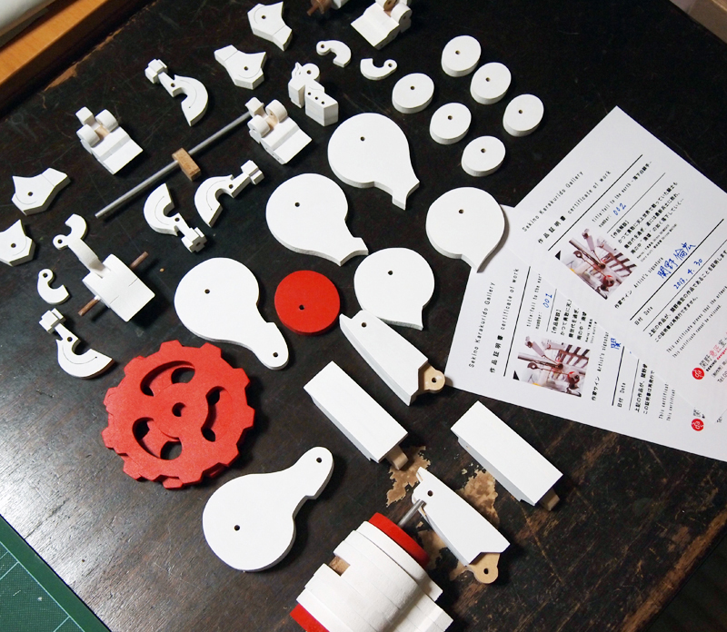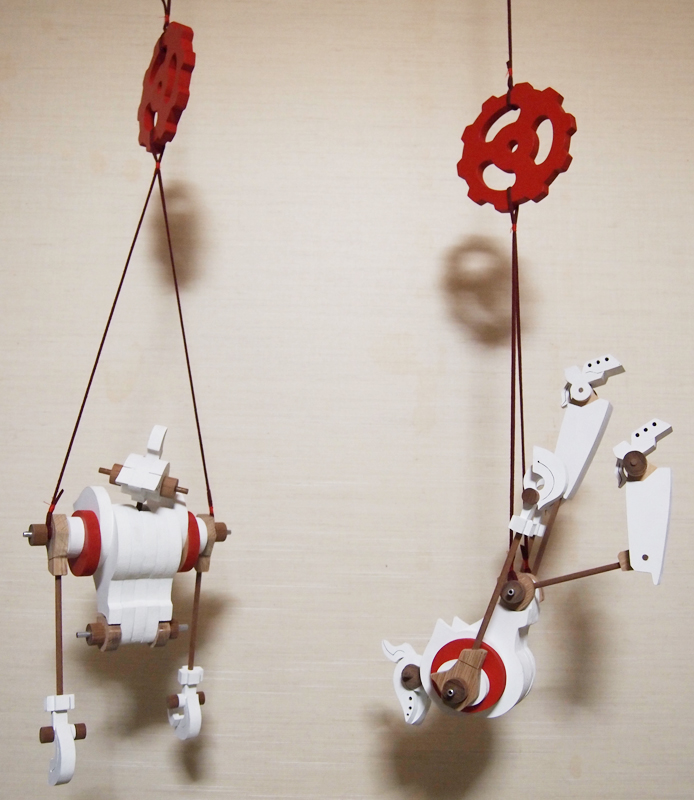 白騎手[取扱方法]など 創 2013年04月30日 白騎手[取扱方法]・・・間接をしっかりと持って動かして下さい。動画紹介 http://youtu.be/7Q4uEvMsAnk白騎手[紐の取付方法]・・・腰の軸棒キャップを外し、紐を通して再びキャップします。動画紹介 http://youtu.be/abP_3Mel24Iミンネminne[ネットショップ]http://minne.com/items/107794<紐についてのご注意>お届け時は、吊り下げ紐を腰部にセッティングしています。(落下形態用)もしも飛翔形態など、頭部を上にする場合は、肩部につけ直してご使用ください。なお、紐はファイバースェードという化学繊維を使用しています。強度はそこそこにある素材ですが、直射日光や湿度の高い場所で長時間、吊り下げ使用した場合、劣化により断裂する恐れがあります。ずっと吊り下げて使用される場合はテグスなど透明な紐で補強して下さい。<落下形態/アレンジ>関野意匠室+絡繰堂HP/http://sdratm.jimdo.com/展覧会+ワークショップ情報/http://sdr.blog.shinobi.jp/Entry/98/常設展示・取り扱い店情報/http://sdr.blog.shinobi.jp/Entry/355/関野絡繰堂NETSHOP/http://sekino.cart.fc2.com/ 関野絡繰堂 公式HP/http://sdratm.jimdo.com/ 展覧会+ワークショップ情報/http://sdr.blog.shinobi.jp/Entry/98/ 関野絡繰堂Yahoo!店/ https://store.shopping.yahoo.co.jp/skdy/ 関野絡繰堂BASE店/ http://sdr.base.ec/ 関野絡繰堂minne店/ https://minne.com/sdr 関野絡繰堂Amazon店/ http://www.amazon.co.jp/(関野絡繰堂で検索) 関野絡繰堂Pinkoi店/ https://jp.pinkoi.com/store/sekino 関野絡繰堂メルカリ店/ https://mercari-shops.com/shops/rhPSvVgTw8RPBKCmLa4tTL 常設展示・取り扱い店情報/http://sdr.blog.shinobi.jp/Entry/355/ カラクリ 絡繰 オートマタ AUTOMATA 組木 ペットの振り子時計 PR http://sdr.blog.shinobi.jp/Entry/399/白騎手[取扱方法]など