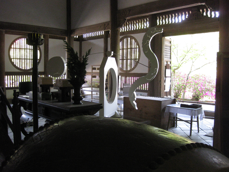 落下トラブル→解決!見事な龍だことよ♪ 想 2013年05月17日 19日から始まる「総社芸術祭」井山宝福寺にて開催される『屋外美術展』について。15日に搬入・設置を終了していたのですが、16日に吹き荒れた強風のため「龍が台座から落ちてあちこち破損している、首も折れてしまった!」と夕方に緊急の電話連絡を受けた。既にお寺は閉まっている時間でしたので、翌17日の午前中に急遽、様子を見ることに。現場を見れていないということは大変な不安を生むものです。状況を見て修復出来ないくらい粉砕されていたら、最悪の場合は引いてしまうしかないな・・・と覚悟していた。《結果》あっさり直りましたァン♪ むしろ首周りに強度的な不安をずっと感じていたので、補強する良い機会となりました。そして同じ程度の強風では落ちないように紐で要所を縛り、動かないようにもしておくなど展示方法の経験値アップも出来ました。・・・宝福寺の天井画の龍には謂れがあります。(副住職から教えて頂いたお話)その昔、初代住職があまりに活き活きと龍を描いたので絵に魂が入り、夜更けに天井を抜け出し、すぐ下の蓮の形をしたお堀まで水を飲みに行っていたんだそうです。それを目撃した村人が怖がったため、目に釘を打ち天井画の中から動かないようにした・・・との言い伝えがあるんだそうです。・・・ウチの子龍も「テンションが上がって暴れたため括りつけた!」っていう伝説誕生で、ひとつよろしくです!笑余談ですが、今回のことは、そもそも動く巨大オブジェなので展示会場で「落下」すること想定して作っていた事が功を奏しました。テーマは「落ちて人や何かにぶつかっても、相手が怪我や破損をせず、こちらが負ける素材であること。」これを条件として発砲スチロールを選択していた安全対策が活きた一件でした。というのも今回は、本堂のど真ん中という異例の寛大な受け入れ態勢で置かせて頂いた展示だったので、転倒時にもしも大切な道具類に破損があったら・・・と最悪の状況が脳裏によぎり冷や汗が吹き出ました。歴史在る禅寺にて数百年の年月を積上げられた仏具に破損があったらと考えると・・・自分の作品の心配どころじゃあなかったです。本日、現場にて副住職に伺い確認したところ、護摩木を多少散らしはしたが、お知らせの入ったプラスチックの額縁にも傷をつけず、そちらに刺さった状態で止まって居たんだとか。他は周囲にあたった形跡も無かったとの事でした。さらに関野は17日夜 東京に向かうので、このタイミングじゃないと状況を見ることはおろか、補修・補強も完全に無理でした。・・・これらのことを総合的に考えると、非常に優秀な子龍だと再認識。会期前・俺が居なくなる前によくぞ落ちてくれた!しかもお寺の大切な道具類に一点の傷もつけなかったこと、非常にナイスな落ち!!100点満点です。この補修がキッカケで、搬入に来られていた憧れの木工家:榎本さんとも入れ替わりにお会いできて握手なんかしてもらったりして♪災い転じて新たな伝説も出来ましたし♪ ・・・今回は甘めに200点差し上げよう。笑※周囲が無事で本当~~~~に!ほっとしました。ピッタリの格言「負けるが勝ち」関野意匠室+絡繰堂HP/http://sdratm.jimdo.com/展覧会+ワークショップ情報/http://sdr.blog.shinobi.jp/Entry/98/常設展示・取り扱い店情報/http://sdr.blog.shinobi.jp/Entry/355/関野絡繰堂NETSHOP/http://sekino.cart.fc2.com/ 関野絡繰堂 公式HP/http://sdratm.jimdo.com/ 展覧会+ワークショップ情報/http://sdr.blog.shinobi.jp/Entry/98/ 関野絡繰堂Yahoo!店/ https://store.shopping.yahoo.co.jp/skdy/ 関野絡繰堂BASE店/ http://sdr.base.ec/ 関野絡繰堂minne店/ https://minne.com/sdr 関野絡繰堂Amazon店/ http://www.amazon.co.jp/(関野絡繰堂で検索) 関野絡繰堂Pinkoi店/ https://jp.pinkoi.com/store/sekino 関野絡繰堂メルカリ店/ https://mercari-shops.com/shops/rhPSvVgTw8RPBKCmLa4tTL 常設展示・取り扱い店情報/http://sdr.blog.shinobi.jp/Entry/355/ カラクリ 絡繰 オートマタ AUTOMATA 組木 ペットの振り子時計 PR http://sdr.blog.shinobi.jp/Entry/401/落下トラブル→解決!見事な龍だことよ♪