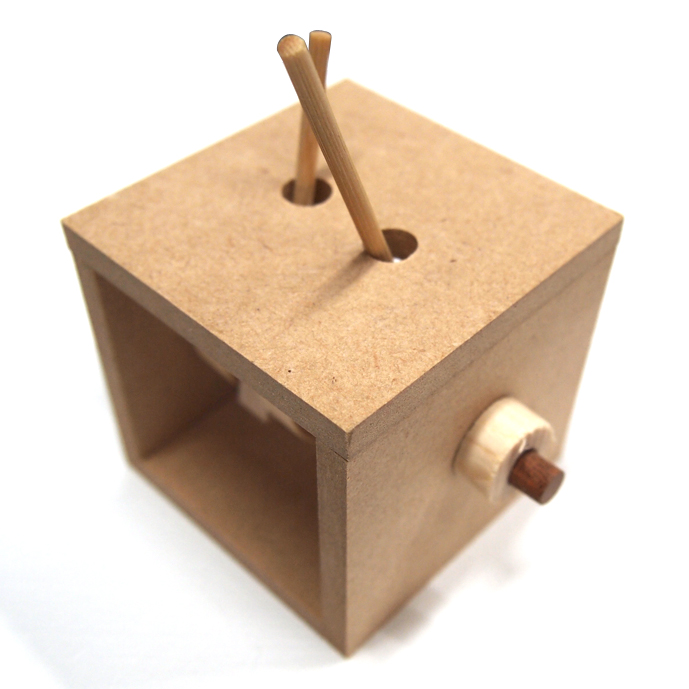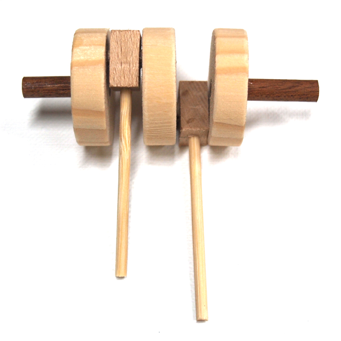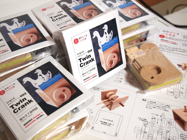 小ぶりながら、カラクリの基素の一つである「クランク」を2つ積んだ工作キットです。