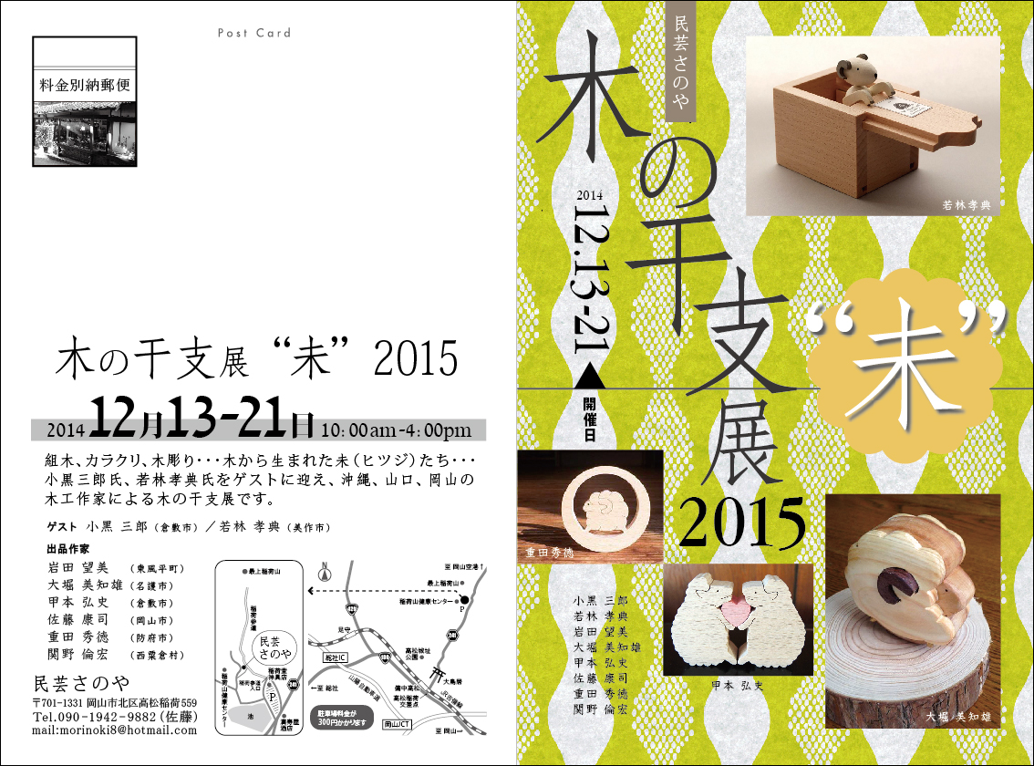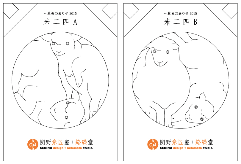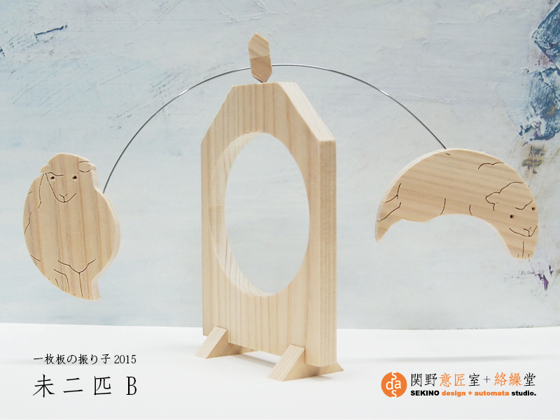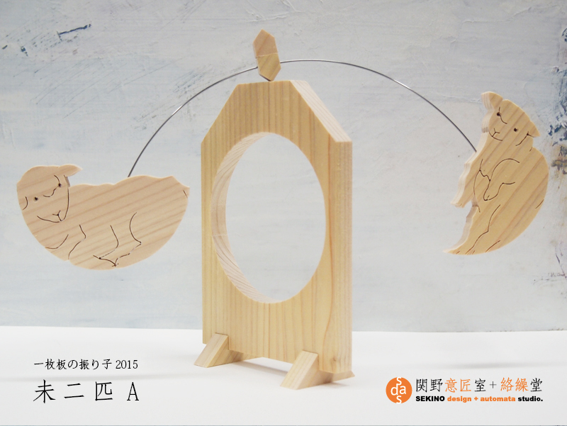 干支もん【未2匹】A/B 2種 報 2014年12月12日 2015年の干支もん・・・羊が完成。今年は、初めての2種展開。 初売りは今年も最上稲荷「民芸さのや」にて。12月13日(土)~21日(日)『木の干支展 “未” 2015』 ※DMのデザインを手がけさせていただきました。通販も承っております。右欄メールフォームよりご注文ください。(送料込3,240円)2015干支もん「未-A」 動画(Youtube)2015干支もん「未-B」 動画(Youtube)これまでのシリーズ一覧 関野絡繰堂 公式HP/http://sdratm.jimdo.com/ 展覧会+ワークショップ情報/http://sdr.blog.shinobi.jp/Entry/98/ 関野絡繰堂Yahoo!店/ https://store.shopping.yahoo.co.jp/skdy/ 関野絡繰堂BASE店/ http://sdr.base.ec/ 関野絡繰堂minne店/ https://minne.com/sdr 関野絡繰堂Amazon店/ http://www.amazon.co.jp/(関野絡繰堂で検索) 関野絡繰堂Pinkoi店/ https://jp.pinkoi.com/store/sekino 関野絡繰堂メルカリ店/ https://mercari-shops.com/shops/rhPSvVgTw8RPBKCmLa4tTL 常設展示・取り扱い店情報/http://sdr.blog.shinobi.jp/Entry/355/ カラクリ 絡繰 オートマタ AUTOMATA 組木 ペットの振り子時計 PR http://sdr.blog.shinobi.jp/Entry/514/干支もん【未2匹】A/B 2種