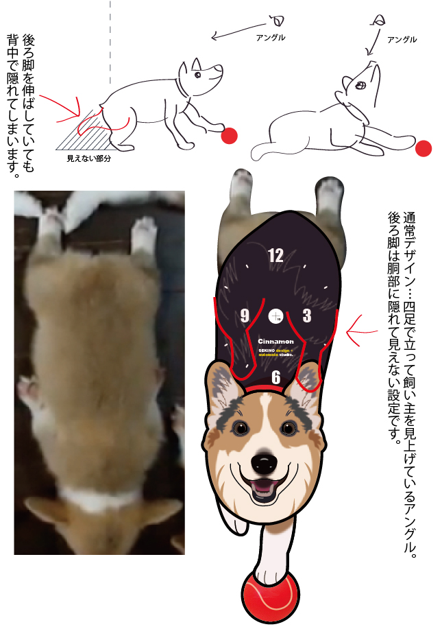 (飼い主さんが)斜め上から見下ろした視点(角度=アングル)を基本デザインとしています。