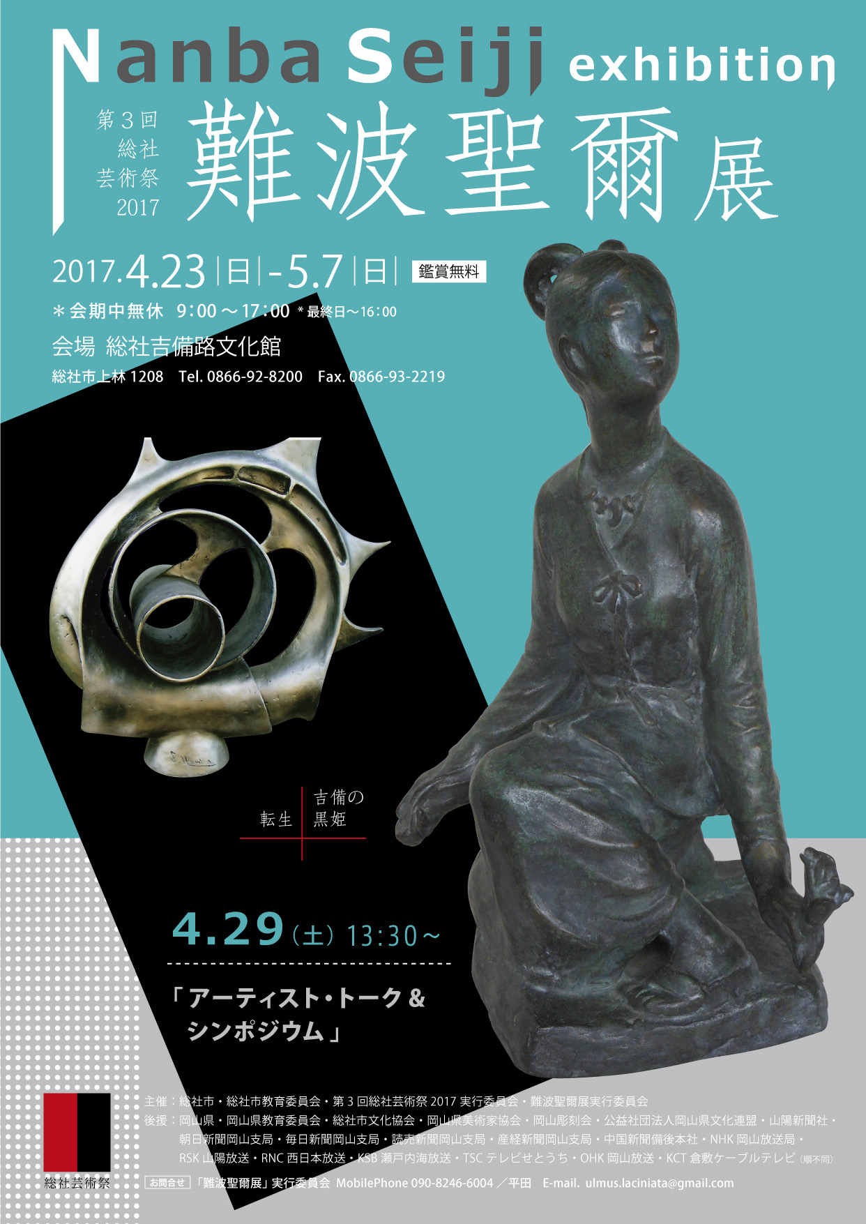 難波征爾展【広報意匠】 報 2017年03月28日 第3回 総社芸術祭「難波征爾展」4/23~5/7 総社吉備路文化館 チラシデザインを担当させていただきました。【総社市HP】http://www.city.soja.okayama.jp/bunka/bunka_sport/bunka/sojageijutsusai/geijutsusai2017/geijutusai2017_2.html 関野絡繰堂 公式HP/http://sdratm.jimdo.com/ 展覧会+ワークショップ情報/http://sdr.blog.shinobi.jp/Entry/98/ 関野絡繰堂Yahoo!店/ https://store.shopping.yahoo.co.jp/skdy/ 関野絡繰堂BASE店/ http://sdr.base.ec/ 関野絡繰堂minne店/ https://minne.com/sdr 関野絡繰堂Amazon店/ http://www.amazon.co.jp/(関野絡繰堂で検索) 関野絡繰堂Pinkoi店/ https://jp.pinkoi.com/store/sekino 関野絡繰堂メルカリ店/ https://mercari-shops.com/shops/rhPSvVgTw8RPBKCmLa4tTL 常設展示・取り扱い店情報/http://sdr.blog.shinobi.jp/Entry/355/ カラクリ 絡繰 オートマタ AUTOMATA 組木 ペットの振り子時計 PR http://sdr.blog.shinobi.jp/Entry/589/難波征爾展【広報意匠】