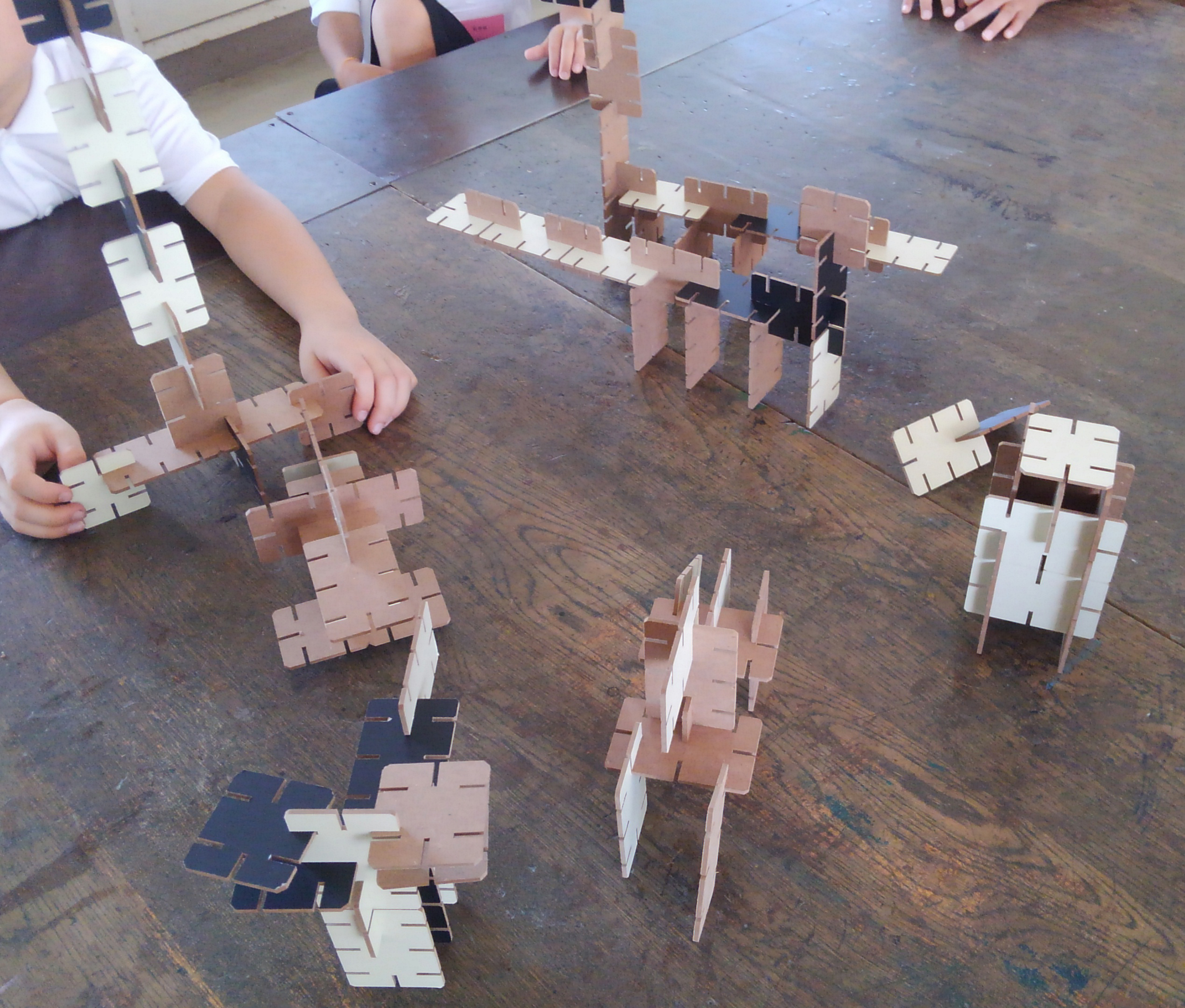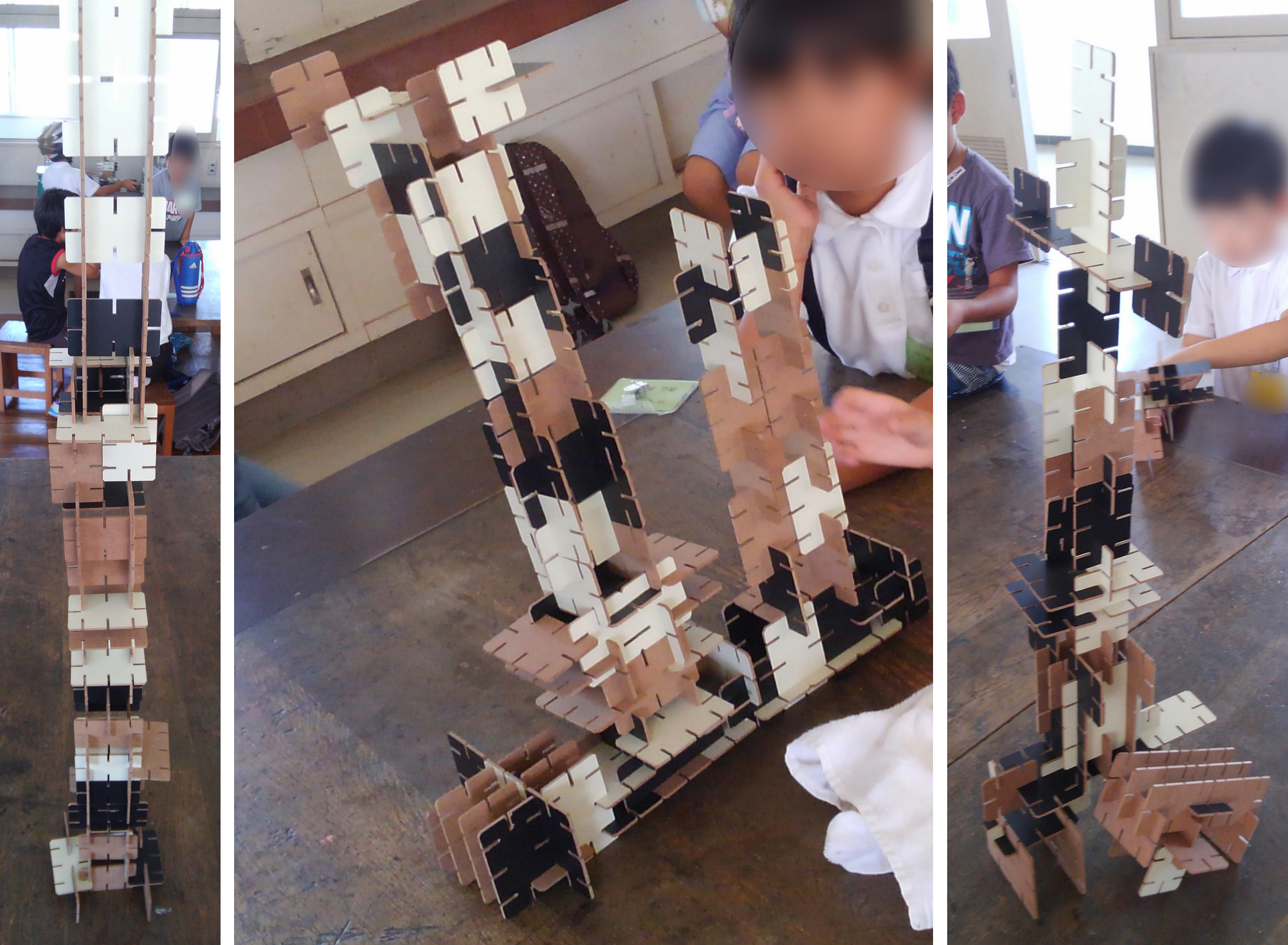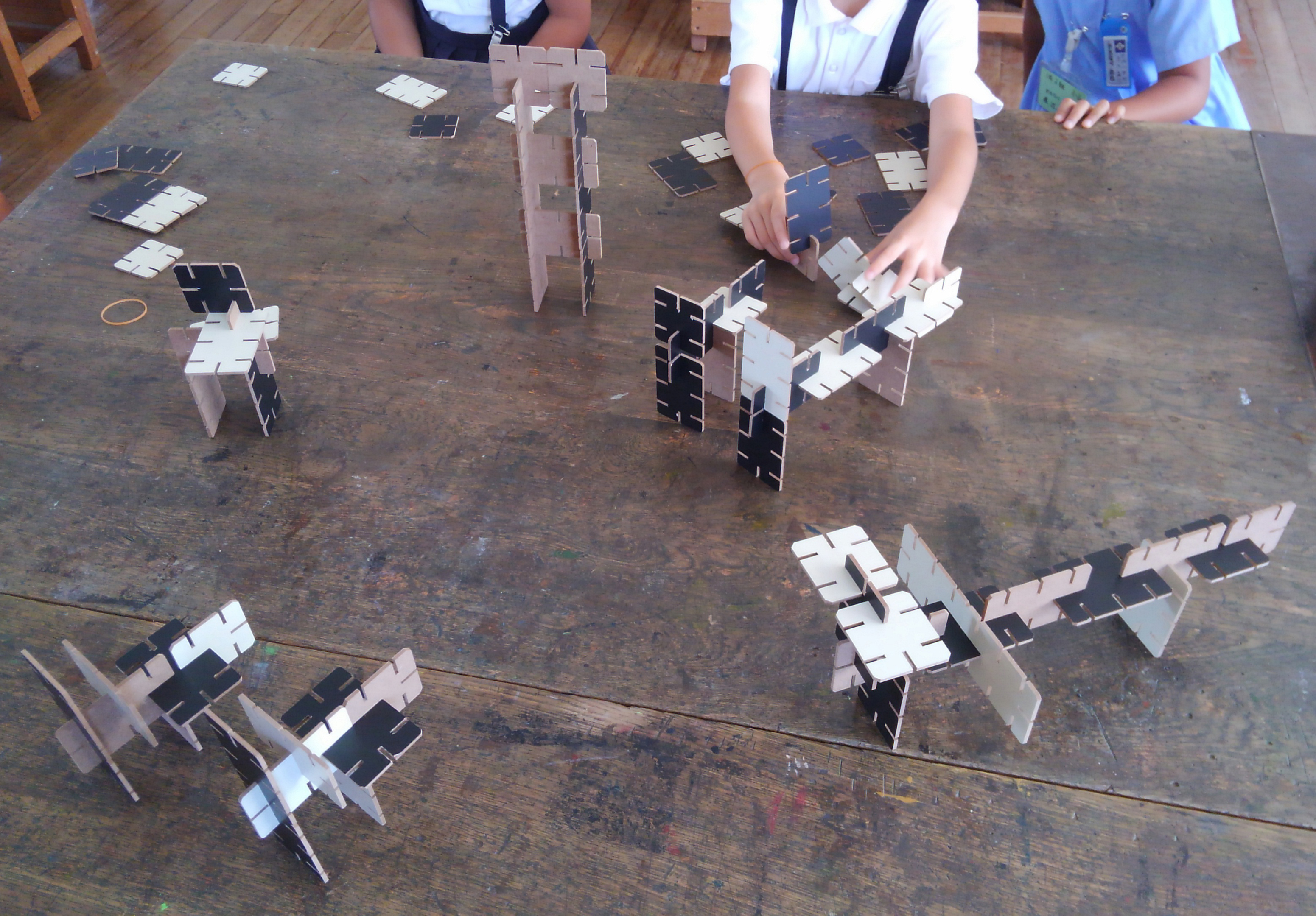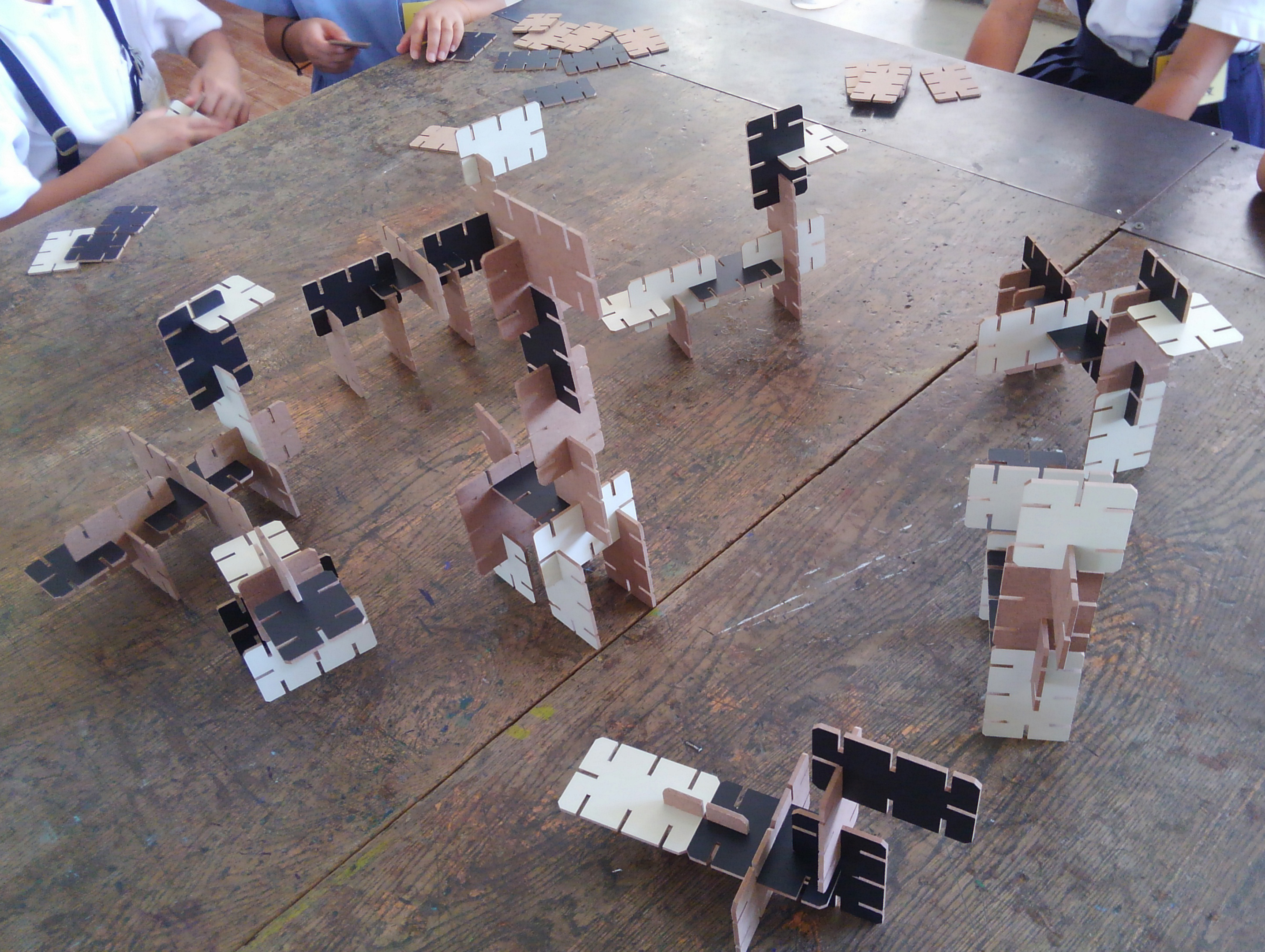 20170810WS-組板@庄内小学校 報 2017年08月11日 卒業校からお声がけ頂いて、出張ワークショップに行ってきました。今年の素材は「組板」平面→立体展開の体験がテーマ板の切れ込み(スリット)を合わせて組む、そして丁寧に取り外すのも大切なポイント。0.基礎的な組み方と分解の作法のレクチャー1.長くつなげる2.しっかりとした土台の自立するタワー(建築物)を作る3.動物や飛行機など自由に見立て遊びをする4.最後には8人1組の班ごとに大きな集合体を作る<共同体験>組板は、何度も組んで分解できる板状ブロック。1人1セットをお土産としてお持ち帰りいただいて、今日の遊びの練習を踏まえて、自宅で遊んでみてください、と伝えて終了しました。<組板 KUMIITA(クミータ)-詳細> 参加者のみなさん、庄内小学校PTAの皆さん、ありがとうございました。 関野絡繰堂 公式HP/http://sdratm.jimdo.com/ 展覧会+ワークショップ情報/http://sdr.blog.shinobi.jp/Entry/98/ 関野絡繰堂Yahoo!店/ https://store.shopping.yahoo.co.jp/skdy/ 関野絡繰堂BASE店/ http://sdr.base.ec/ 関野絡繰堂minne店/ https://minne.com/sdr 関野絡繰堂Amazon店/ http://www.amazon.co.jp/(関野絡繰堂で検索) 関野絡繰堂Pinkoi店/ https://jp.pinkoi.com/store/sekino 関野絡繰堂メルカリ店/ https://mercari-shops.com/shops/rhPSvVgTw8RPBKCmLa4tTL 常設展示・取り扱い店情報/http://sdr.blog.shinobi.jp/Entry/355/ カラクリ 絡繰 オートマタ AUTOMATA 組木 ペットの振り子時計 PR http://sdr.blog.shinobi.jp/Entry/602/20170810WS-組板@庄内小学校