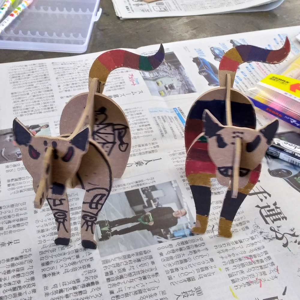 ※自分で企画制作、量産したアート玩具を、子供たちに遊んでもらって、たくさんの面白い作例サンプルを作ってもらえるという。。。夢のような仕事をしております。笑