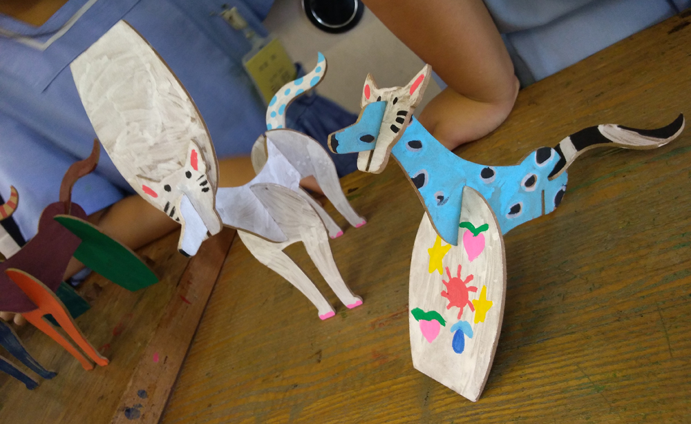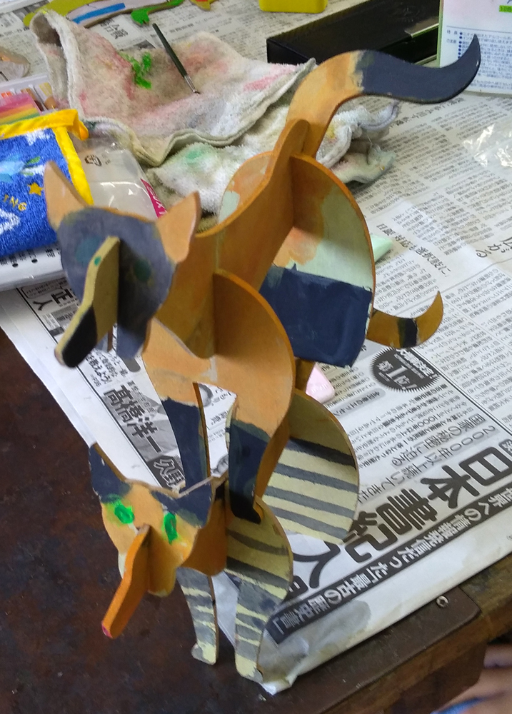 組板ー基本形の犬×2を自由に組んで色塗りするWS