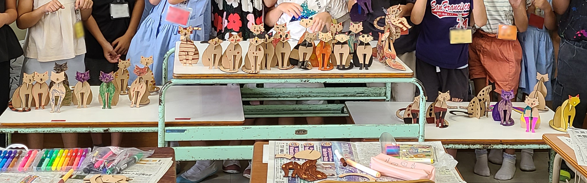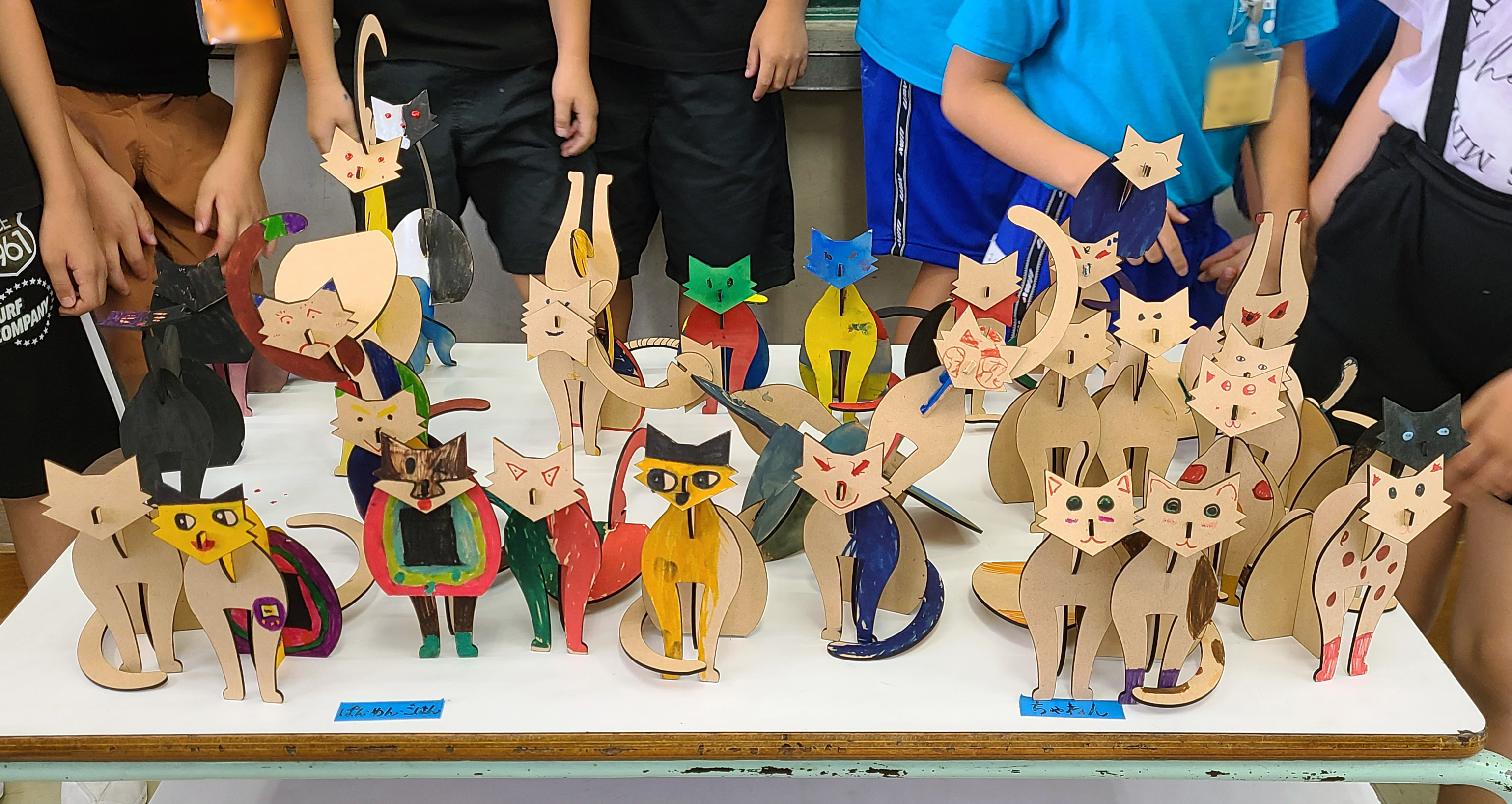 「組板 猫」小学生ワークショップ202408 報 2024年08月08日 2024年8月2日 小学生対象のワークショップを行いました♪組板 猫2匹関野絡繰堂として、工作キットを初レーザーカットで製作しました。断裁面の焦げが特徴ですね。左奥:レーザー/右手前:糸鋸 制作 本年度は49名の参加者。楽しく思い思いの彩色を楽しんでもらいました♪ありがとうございました!1枚目(1~2年生)2枚目(3~6年生) 今後、工作キットをレーザーカットで次々と刷新していくつもりです。 関野絡繰堂 公式HP/http://sdratm.jimdo.com/ 展覧会+ワークショップ情報/http://sdr.blog.shinobi.jp/Entry/98/ 関野絡繰堂Yahoo!店/ https://store.shopping.yahoo.co.jp/skdy/ 関野絡繰堂BASE店/ http://sdr.base.ec/ 関野絡繰堂minne店/ https://minne.com/sdr 関野絡繰堂Amazon店/ http://www.amazon.co.jp/(関野絡繰堂で検索) 関野絡繰堂Pinkoi店/ https://jp.pinkoi.com/store/sekino 関野絡繰堂メルカリ店/ https://mercari-shops.com/shops/rhPSvVgTw8RPBKCmLa4tTL 常設展示・取り扱い店情報/http://sdr.blog.shinobi.jp/Entry/355/ カラクリ 絡繰 オートマタ AUTOMATA 組木 ペットの振り子時計 PR http://sdr.blog.shinobi.jp/Entry/664/「組板 猫」小学生ワークショップ202408