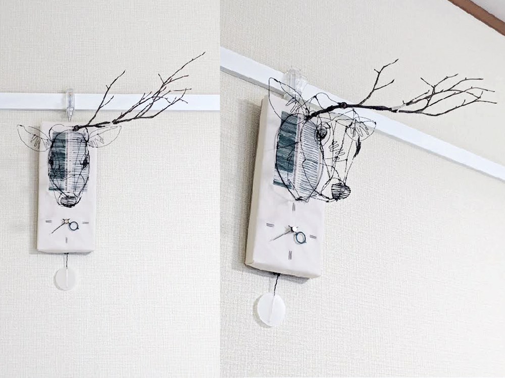 鹿と植林~間伐をテーマにした振り子時計。