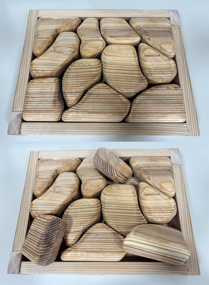 杉板を2枚貼り合わせ手鋸で切り出したパズル。丁寧に角を落として仕上げた力作。