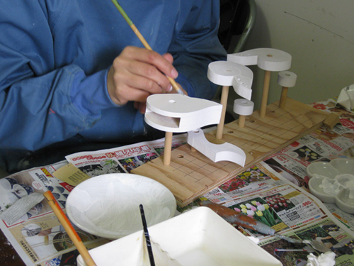 サイズハンズロボット展示用作品 創 2009年10月09日 頭部の着彩と削りが完成。 彩色風景(嫁さん) 本日、正式な口約束がなされ(笑)、関野意匠室+絡繰堂の「絵師+彩色師」として、嫁さんがテゴ(手伝い:岡山弁)をしてくれることになりました。名刺も作成中♪ロボの頭部アップもこうして見ると鳥のようだ。安全第一(笑) 関野絡繰堂 公式HP/http://sdratm.jimdo.com/ 展覧会+ワークショップ情報/http://sdr.blog.shinobi.jp/Entry/98/ 関野絡繰堂Yahoo!店/ https://store.shopping.yahoo.co.jp/skdy/ 関野絡繰堂BASE店/ http://sdr.base.ec/ 関野絡繰堂minne店/ https://minne.com/sdr 関野絡繰堂Amazon店/ http://www.amazon.co.jp/(関野絡繰堂で検索) 関野絡繰堂Pinkoi店/ https://jp.pinkoi.com/store/sekino 関野絡繰堂メルカリ店/ https://mercari-shops.com/shops/rhPSvVgTw8RPBKCmLa4tTL 常設展示・取り扱い店情報/http://sdr.blog.shinobi.jp/Entry/355/ カラクリ 絡繰 オートマタ AUTOMATA 組木 ペットの振り子時計 PR http://sdr.blog.shinobi.jp/Entry/87/サイズハンズロボット展示用作品