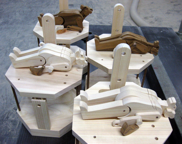 カツオの秘密とクマ工場 創 2010年04月08日 先日、10個の製作を終えた、とと[カツオ]の秘密を少し。人形はこんな風に3つのパーツで出来てます。 指でつまんでいる頭&胴体と尾ひれを繋ぐパーツが、体を左右に動かすために重要なパーツ。・・・・・・・・・・・・・・・・・・・・・・そして、先ほどまで創っていたクマたち。 髭のオイサン、今日はもうお休みかい?お先に寝るっス・・・なクマたち。明日完成予定。 関野絡繰堂 公式HP/http://sdratm.jimdo.com/ 展覧会+ワークショップ情報/http://sdr.blog.shinobi.jp/Entry/98/ 関野絡繰堂Yahoo!店/ https://store.shopping.yahoo.co.jp/skdy/ 関野絡繰堂BASE店/ http://sdr.base.ec/ 関野絡繰堂minne店/ https://minne.com/sdr 関野絡繰堂Amazon店/ http://www.amazon.co.jp/(関野絡繰堂で検索) 関野絡繰堂Pinkoi店/ https://jp.pinkoi.com/store/sekino 関野絡繰堂メルカリ店/ https://mercari-shops.com/shops/rhPSvVgTw8RPBKCmLa4tTL 常設展示・取り扱い店情報/http://sdr.blog.shinobi.jp/Entry/355/ カラクリ 絡繰 オートマタ AUTOMATA 組木 ペットの振り子時計 PR http://sdr.blog.shinobi.jp/Entry/152/カツオの秘密とクマ工場