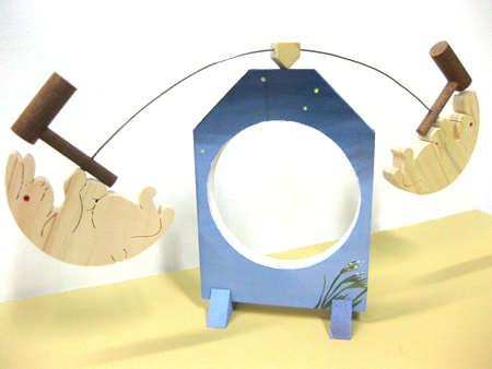 「月見ウサギ」特別彩色版・・・宵闇ススキ ※試作品のため杵が大きい(笑)